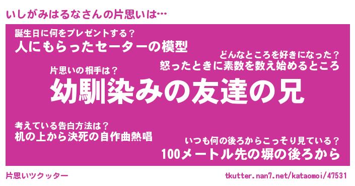 | 伝説のあだ名 | 『伝説のスナイパーいしがみはるな』 |