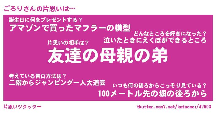 | ヘコむあだ名 | 『ごろにー』『なまこ酢』『ごろ太郎』 |