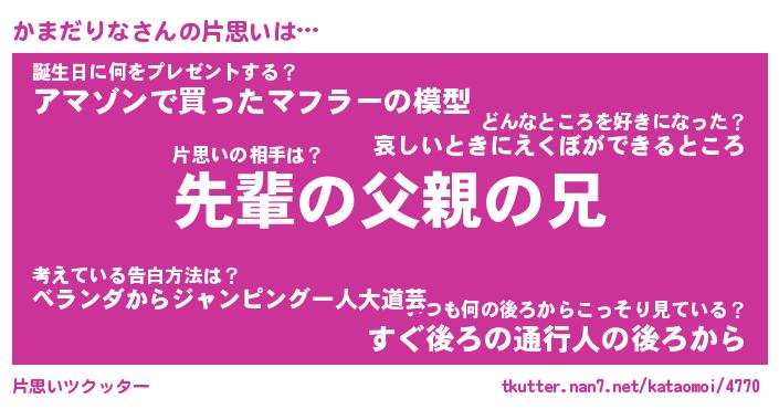 | ヒーロー風カッコイイあだ名 | 『スーパーカマダリナ』『幻影騎士カマ』 |
