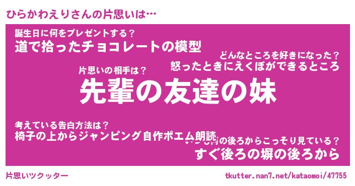 | 意味不明あだ名 | 『ペロリンひらかわえり』 |
