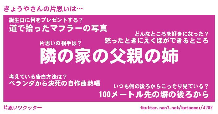 | 胡散臭い通販商品みたいなあだ名 | 『必ず成功するブレスレット…その名も「きょうや」』 |