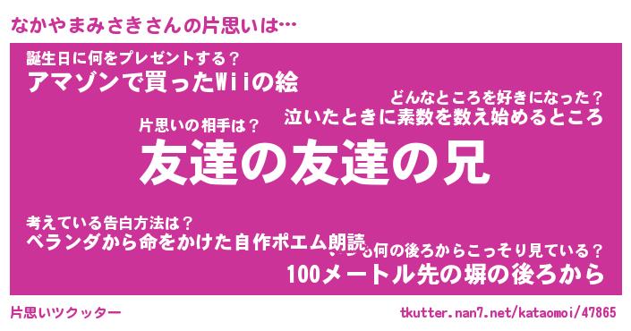 | 伝説のあだ名 | 『封印されしスナイパーなかやまみさき』 |