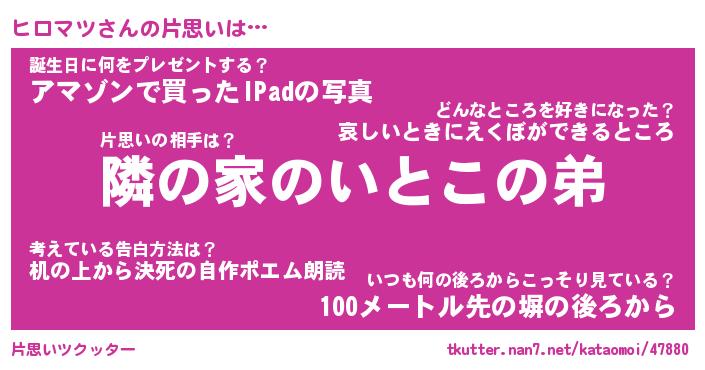 | ヒーロー風カッコイイあだ名 | 『スーパーヒロマツ』『暗黒騎士ヒロ』 |