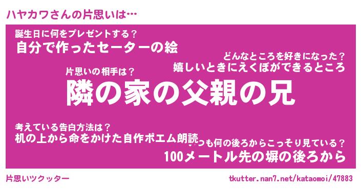 | ファンタジー風あだ名 | 『ハヤフェル』『エターナルハヤカワー』 |