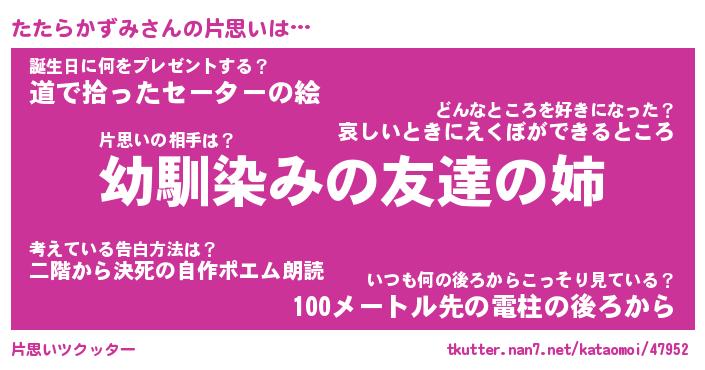 | 胡散臭い通販商品みたいなあだ名 | 『必ず成功する霊験あらたかなお札…その名も「たたらかずみ」』 |