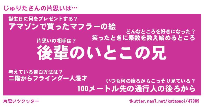 | 意味不明あだ名 | 『ペロリンじゅりた』『永久保存じゅりた』 |