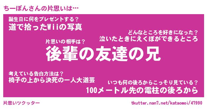| 意味不明あだ名 | 『ペロリンちーぽん』『永久保存ちーぽん』 |