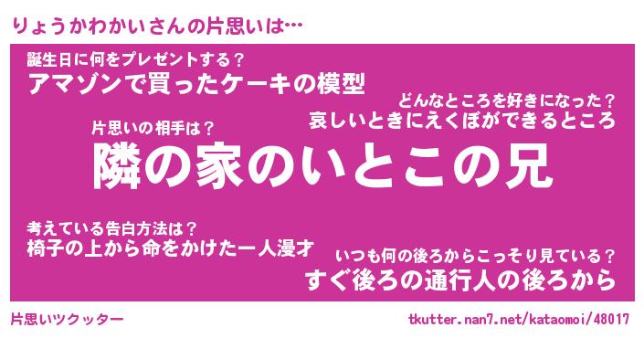 | 男性向けラノベタイトル風あだ名 | 『りょうかわかいの憂鬱』 |