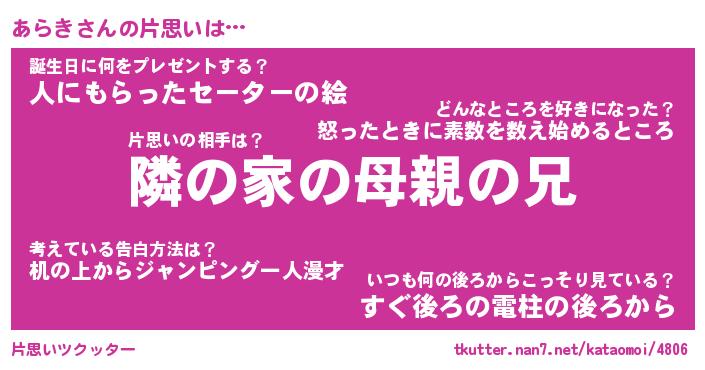 | 胡散臭い通販商品みたいなあだ名 | 『モテモテ間違いなしブレスレット…その名も「あらき」』 |