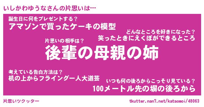 | 女子向けラノベタイトル風あだ名 | 『誰かこのいしかわゆうなを説明してください! ~契約から始まるウェディング~』 |