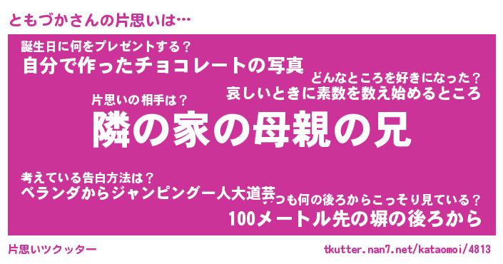 | ヘコむあだ名 | 『ともにー』『つくし』『ともお』 |