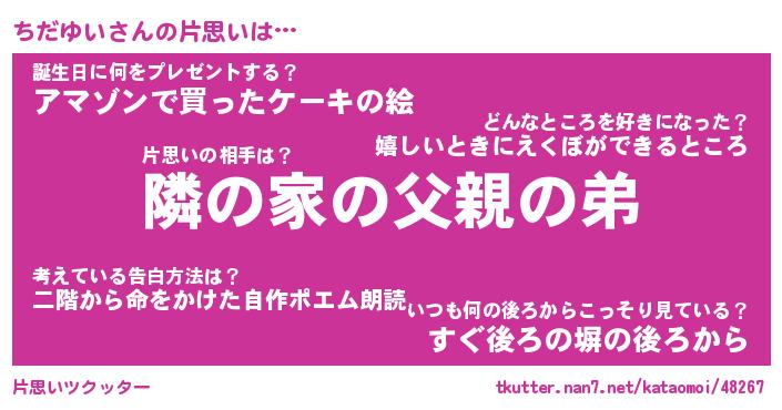 | 胡散臭い通販商品みたいなあだ名 | 『モテモテ間違いなし水晶球…その名も「ちだゆい」』 |