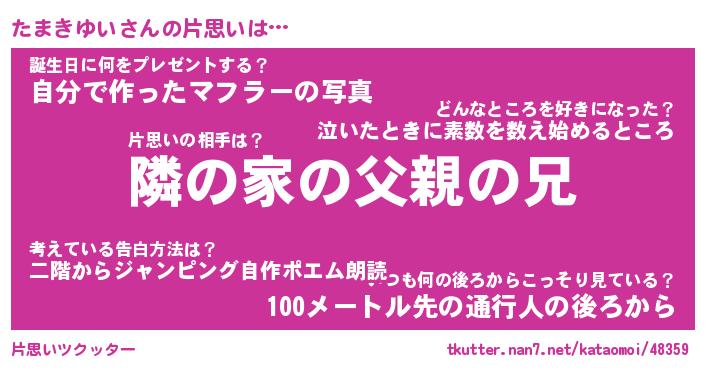 | ヘコむあだ名 | 『たまにゅー』『つくし』『たま太郎』 |