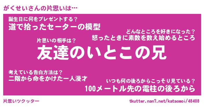 | ヘコむあだ名 | 『がくもー』『酢こんぶ』『がくっ子』 |