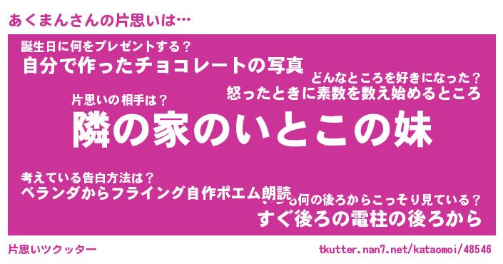 | 意味不明あだ名 | 『ペロリンあくまん』『永久保存あくまん』 |