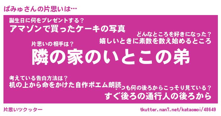 | 男性向けラノベタイトル風あだ名 | 『ぱみゅの憂鬱』 |