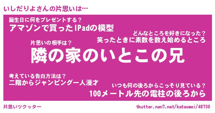 | ピコ太郎風あだ名 | 『イコ五郎』『ピイ三郎』『イシ六郎』 |