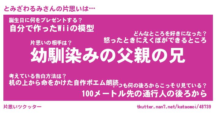 | ポケモン風あだ名 | 『トミチュウ』『トミザダネ』 |