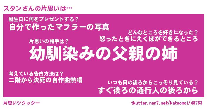 | 男性向けラノベタイトル風あだ名 | 『スタンの憂鬱』 |