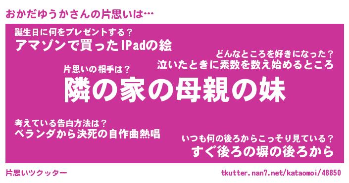 | 恥ずかしいあだ名 | 『プリティーおかだゆうか』『おかっちょ』 |
