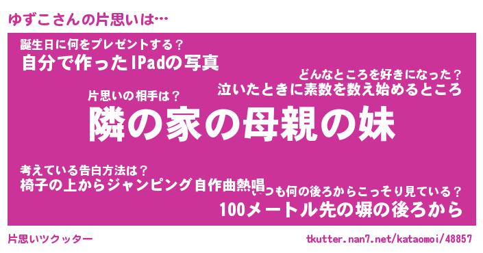 | 胡散臭い通販商品みたいなあだ名 | 『モテモテ間違いなしブレスレット…その名も「ゆずこ」』 |