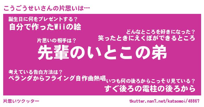 | ヘコむあだ名 | 『こうもー』『つくし』『こうを』 |