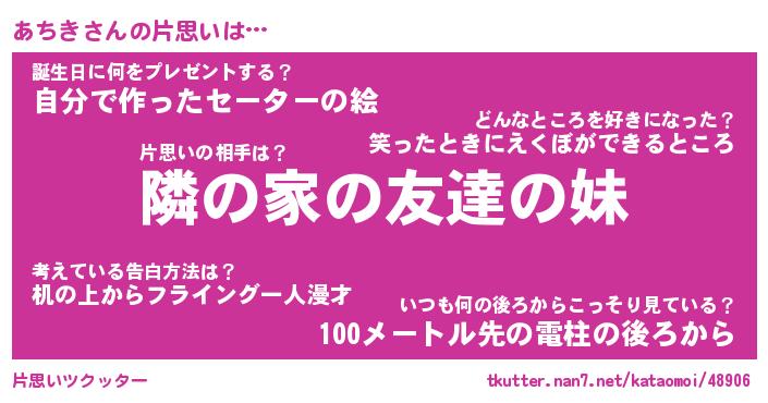 | 意味不明あだ名 | 『ペロリンあちき』『あちきフォーエバー』 |