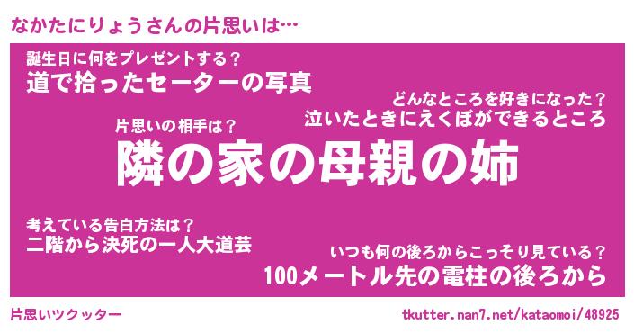 | 胡散臭い通販商品みたいなあだ名 | 『必ず成功するブレスレット…その名も「なかたにりょう」』 |