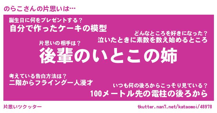 | 意味不明あだ名 | 『ペロリンのらこ』『のらこフォーエバー』 |