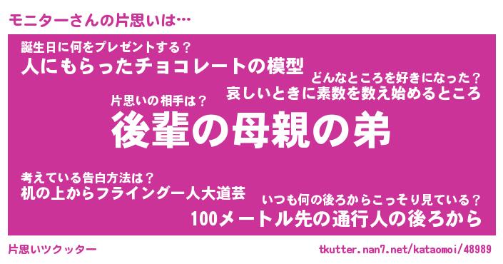 | ツイッター | モニターさんのツイッターID『dendenmushi_man』 |
