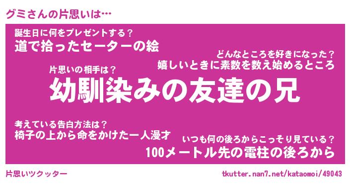 | ファンタジー風あだ名 | 『グミフェル』『エターナルグミー』 |