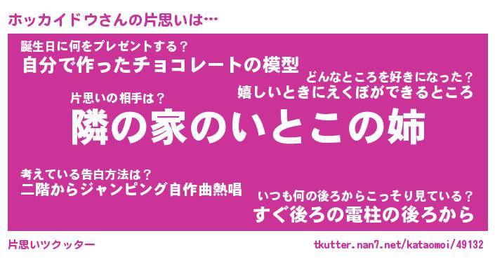 | 男性向けラノベタイトル風あだ名 | 『ホッカイドウの憂鬱』 |