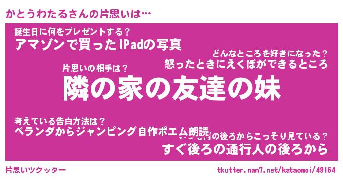 | 胡散臭い通販商品みたいなあだ名 | 『モテモテ間違いなし霊験あらたかなお札…その名も「かとうわたる」』 |