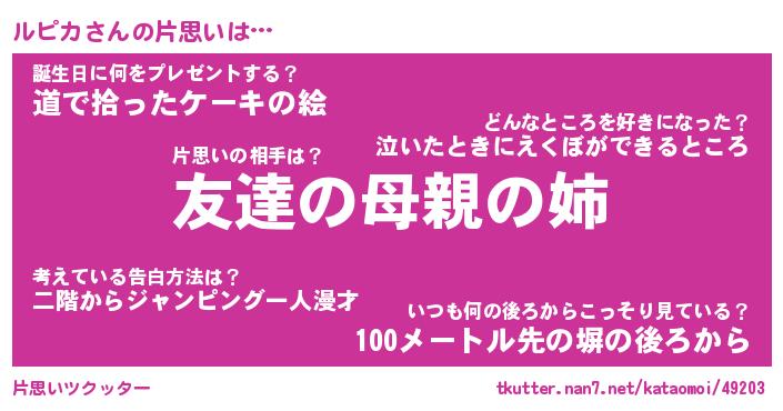 | ヘコむあだ名 | 『ルピにー』『つくし』『ルピお』 |