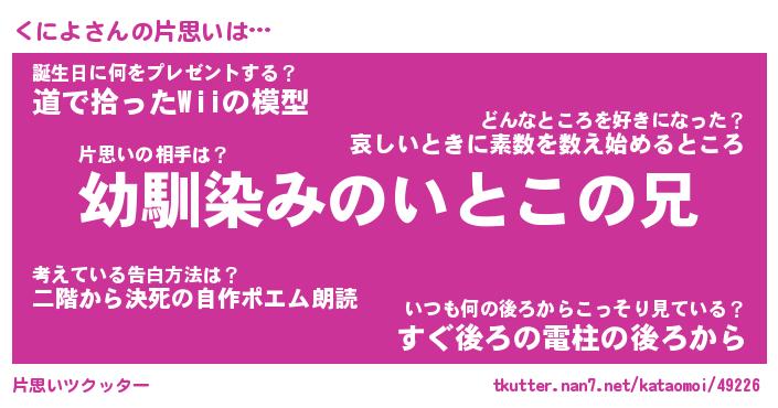 | 男性向けラノベタイトル風あだ名 | 『くによの憂鬱』 |
