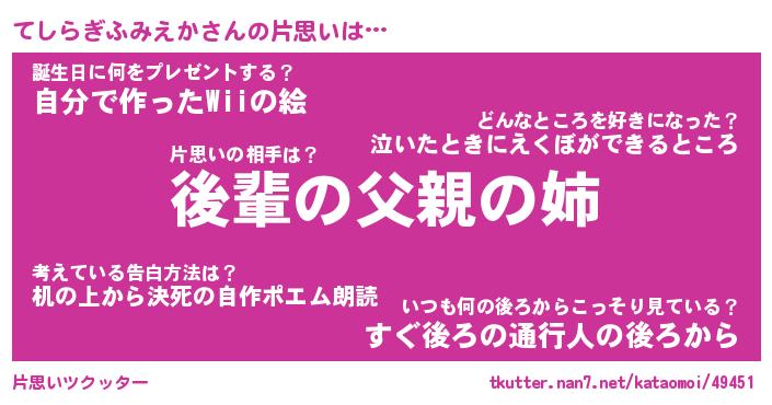 | 肩書あだ名 | 『てしらぎふみえか店長』 |