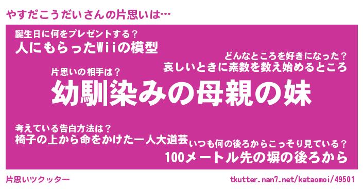 | 女子向けラノベタイトル風あだ名 | 『(仮)やすだこうだいのやんごとなき事情』 |