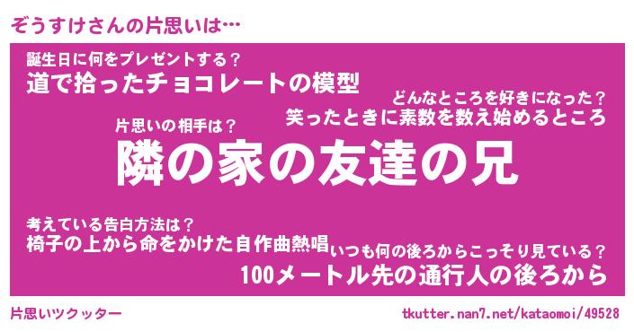 | 意味不明あだ名 | 『ペロリンぞうすけ』『永久保存ぞうすけ』 |