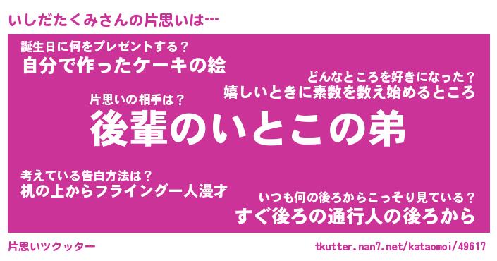 | 胡散臭い通販商品みたいなあだ名 | 『億万長者になれる水晶球…その名も「いしだたくみ」』 |