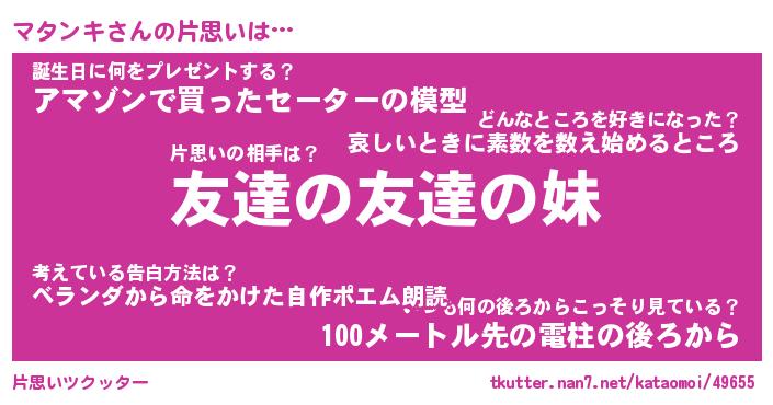 | 意味不明あだ名 | 『ペロリンマタンキ』『永久保存マタンキ』 |