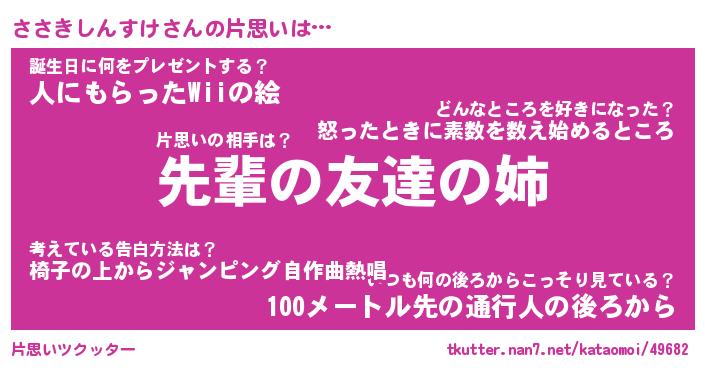 | 胡散臭い通販商品みたいなあだ名 | 『モテモテ間違いなし霊験あらたかなお札…その名も「ささきしんすけ」』 |