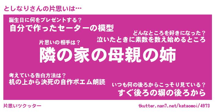 | ファンタジー風あだ名 | 『トシフェル』『エターナルトシナリー』 |