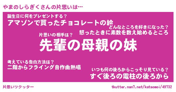 | 男性向けラノベタイトル風あだ名 | 『やまのしらぎくの憂鬱』 |