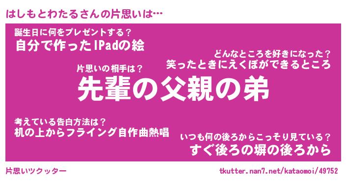 | 胡散臭い通販商品みたいなあだ名 | 『モテモテ間違いなしブレスレット…その名も「はしもとわたる」』 |
