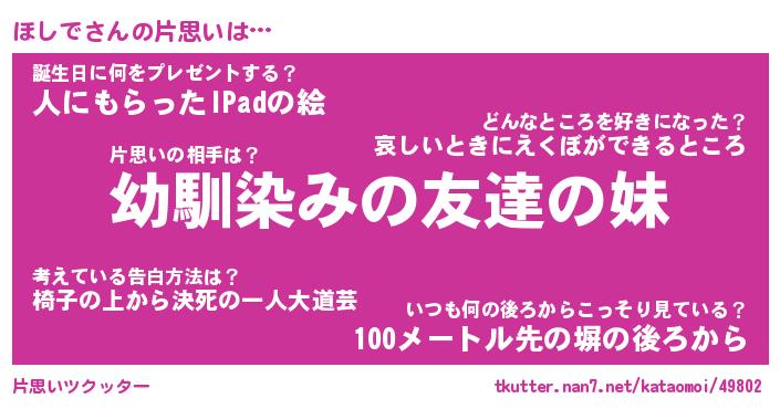 | 男性向けラノベタイトル風あだ名 | 『ほしでの憂鬱』 |