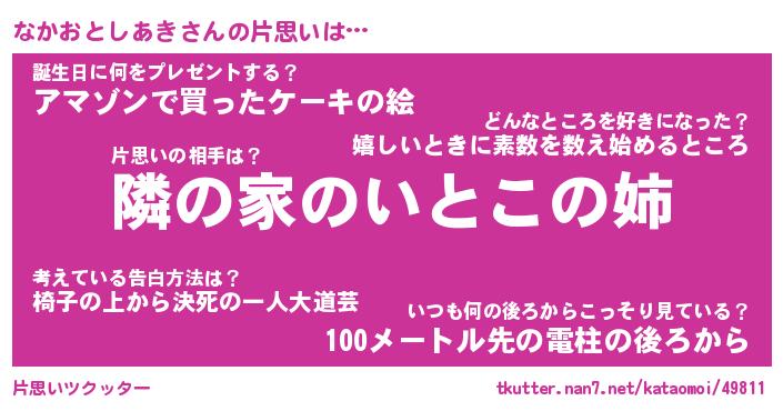 | 男性向けラノベタイトル風あだ名 | 『なかおとしあきの憂鬱』 |