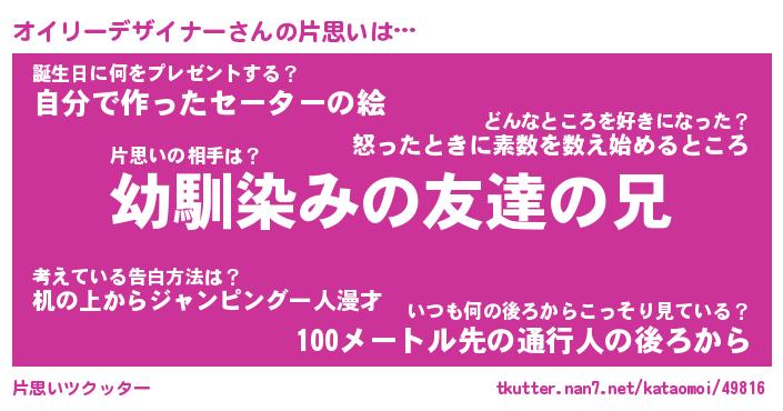 | 男性向けラノベタイトル風あだ名 | 『オイリーデザイナーの憂鬱』 |