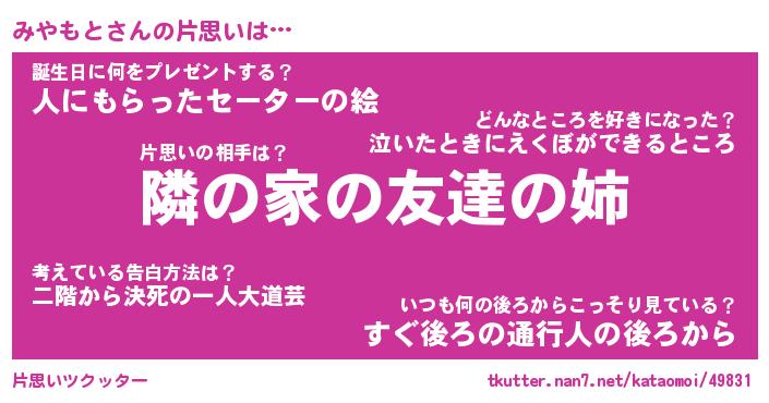 | 胡散臭い通販商品みたいなあだ名 | 『モテモテ間違いなし霊験あらたかなお札…その名も「みやもと」』 |
