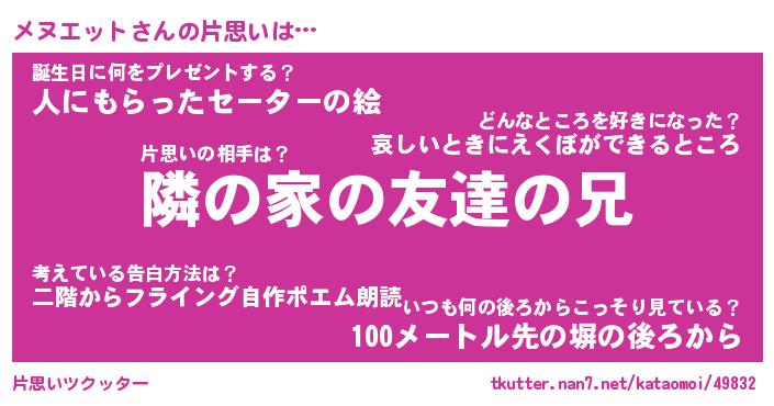 | ヘコむあだ名 | 『メヌっふぃ~』『つくし』 |