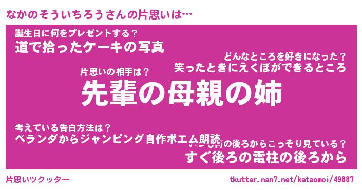 | 男性向けラノベタイトル風あだ名 | 『なかのそういちろうの憂鬱』 |